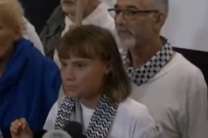 Pese a las denuncias de que la activista habría sido golpeada y obligada a besar la bandera israelí, así como los malos tratos que recibieron los integrantes de la flotilla durante su reclusión en Israel, Thunberg señaló que podría hablar horas de ello; sin embargo, “esa no es la historia”, sino los intentos del gobierno de Benjamin Netanyahu para “borrar a toda una población.