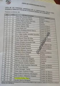 La Junta de Coordinación Política, que preside el senador Adán Augusto López Hernández, publicó la lista que contiene los nombres de 43 personas que cumplieron con los requisitos de la convocatoria pública para ocupar el cargo de titular de la Fiscalía General de la República.