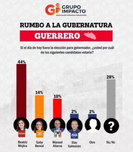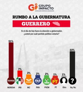 La encuestadora Grupo Impacto realizó un ejercicio de opinión para conocer las preferencias electorales de los guerrerenses, con miras al proceso electoral que se celebrará en junio de 2027 para renovar su gubernatura.
