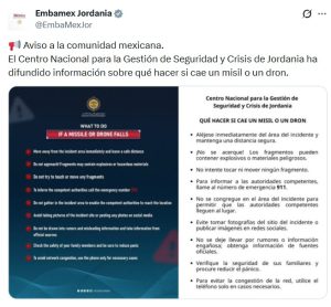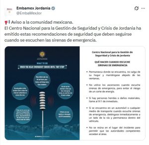 Ante la escalada de ataques de Estados Unidos e Israel contra Irán, la Secretaría de Relaciones Exteriores (SRE) informó que desde el día de ayer sus representaciones en Irán, Israel, Qatar, Arabia Saudita, Emiratos Árabes Unidos, Jordania, Líbano y Kuwait se encuentran en contacto permanente con la comunidad mexicana, monitoreando la situación y se han activado los protocolos de protección y asistencia consular, para connacionales y familiares del personal diplomático.