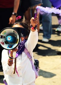 Escucha, lágrimas, abrazos solidarios y baile, fueron el otro escenario que se vivió. Porque, dicen, “bailando también se lucha”; porque la sororidad se respiraba en la multitud escoltada por las jacarandas de la temporada; porque el respaldo de las abuelitas que salieron a marchar por primera vez también se sintió.