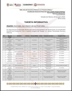 La Fiscalía General de Justicia del Estado de México ajustó a 13 las personas que resultaron lesionadas durante el tiroteo en la Pirámide de la Luna, en la zona arqueológica de Teotihuacán.
